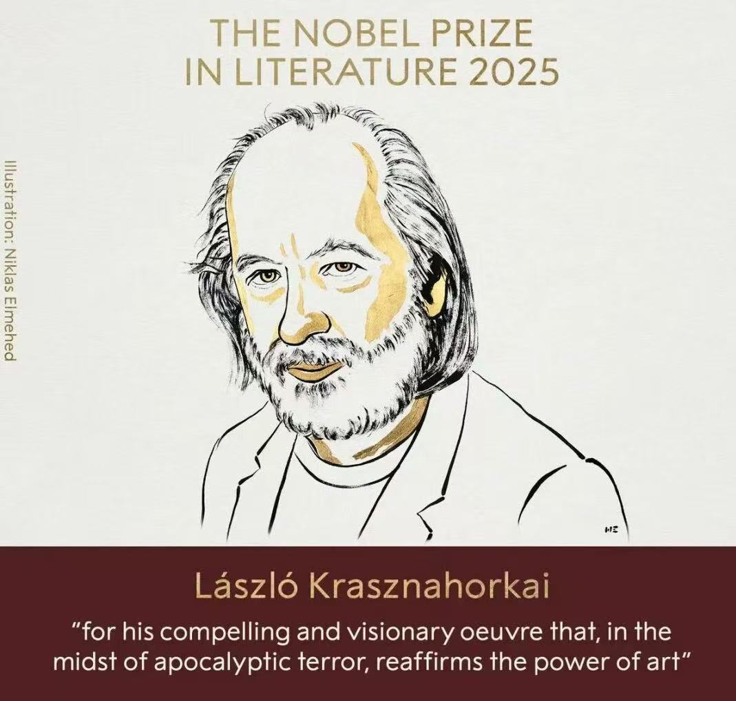 据诺贝尔奖官网消息,北京时间10月9日19时,2025年诺贝尔文学奖揭晓,匈牙利作家拉斯洛·卡撒兹纳霍凯获奖。授奖理由称赞他“在末世恐惧中仍能通过震撼人心且具先知般洞察力的作品,重申艺术力量”。